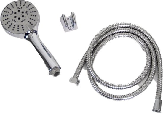 Deze Basic douchekop met 5-straal functies van 1.5 cm is perfect voor iedereen die op zoek is naar een eenvoudige, kwaliteitsvolle douchekop. De douchekop is gemaakt van hoogwaardig kunststof en metaal. De douchekop heeft 5 verschillende straalsnufjes voor een optimale waterdruk. De doucheslang is 1.5 cm dik en is gemaakt van metaal. Het mooie zilverkleurige ontwerp van de douchekop en de slang maken deze badkameraccessoire tot een echte eyecatcher in de badkamer. Deze Basic douchekop met 5-straal functies komt met een verstelbare montagebeugel waarmee je de douchekop gemakkelijk kunt aanpassen aan elke hoogte of positie. De douchekop heeft een kogelkraan met een verstelbare waterdruk. Daarnaast is de douchekop uitgerust met een luchtvernevelingssysteem waardoor het water wordt vermengd met lucht voor een nog betere waterdruk. De douchekop heeft ook een anti-kalk functie, waardoor je geen last meer hebt van kalkaanslag. Deze kop is ideaal voor iedereen die kwaliteit en duurzaamheid zoekt voor een scherpe prijs.