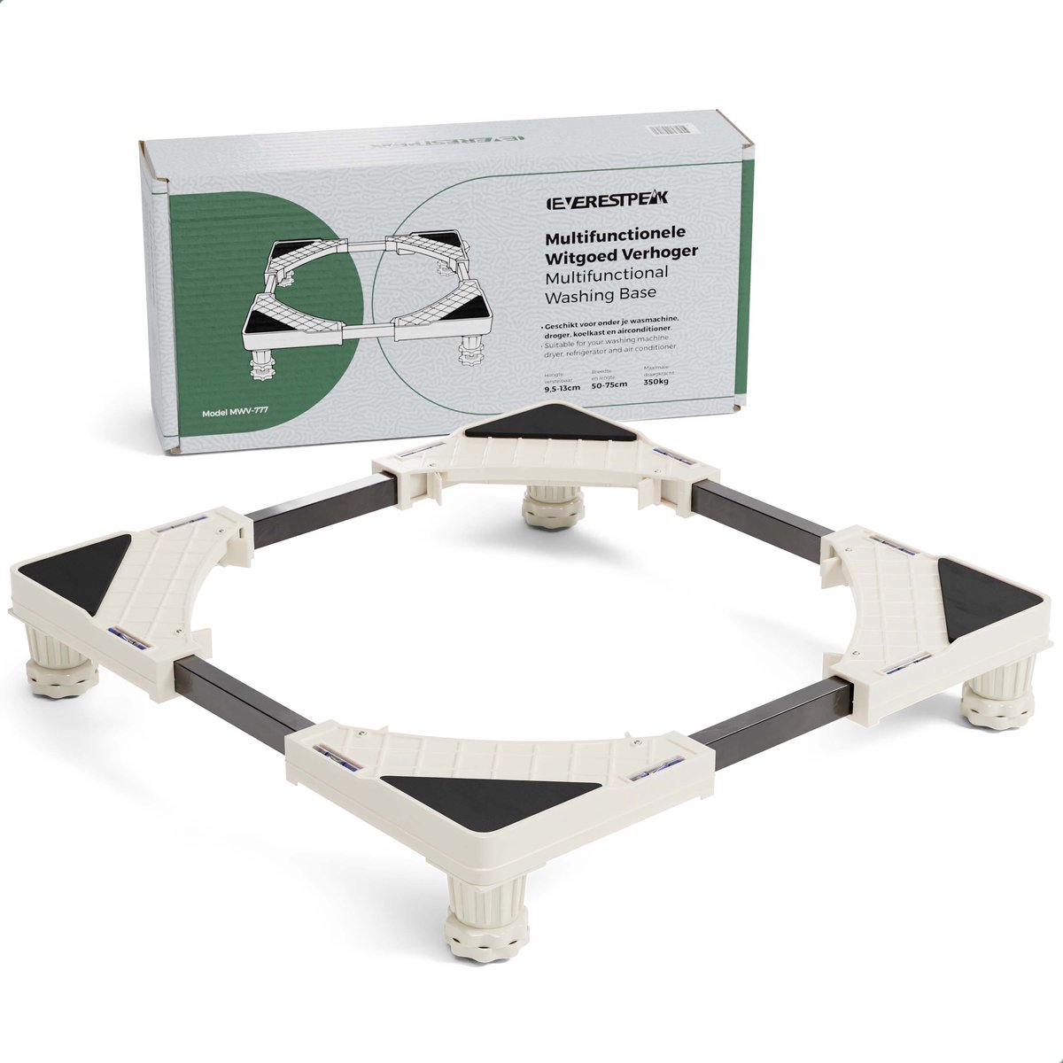 Met de Olvy wasmachine verhoger kun je eenvoudig en veilig wasmachines, drogers, koelkasten, vaatwassers en andere grote apparaten verplaatsen. De verhoger is gemaakt van duurzaam materiaal en kan tot 500 kg aan gewicht dragen. Met de wielen onder het product kun je het gemakkelijk in een andere kamer verplaatsen. Deze verhoger is ideaal voor het opbouwen van meubels. Doordat de verhoger anti-vibratie pads en anti-shock matten bevat, zal je meer rust in huis ervaren. De Olvy wasmachine verhoger is eenvoudig te installeren en zorgt voor een veilig en stevig platform. Je kunt het apparaat stabiliseren met behulp van de meegeleverde stelstukken. Deze verhoger kan eenvoudig worden gemonteerd op de meeste vloeren. Met de verhoger blijft de vloer schoon en voorkom je rugklachten.